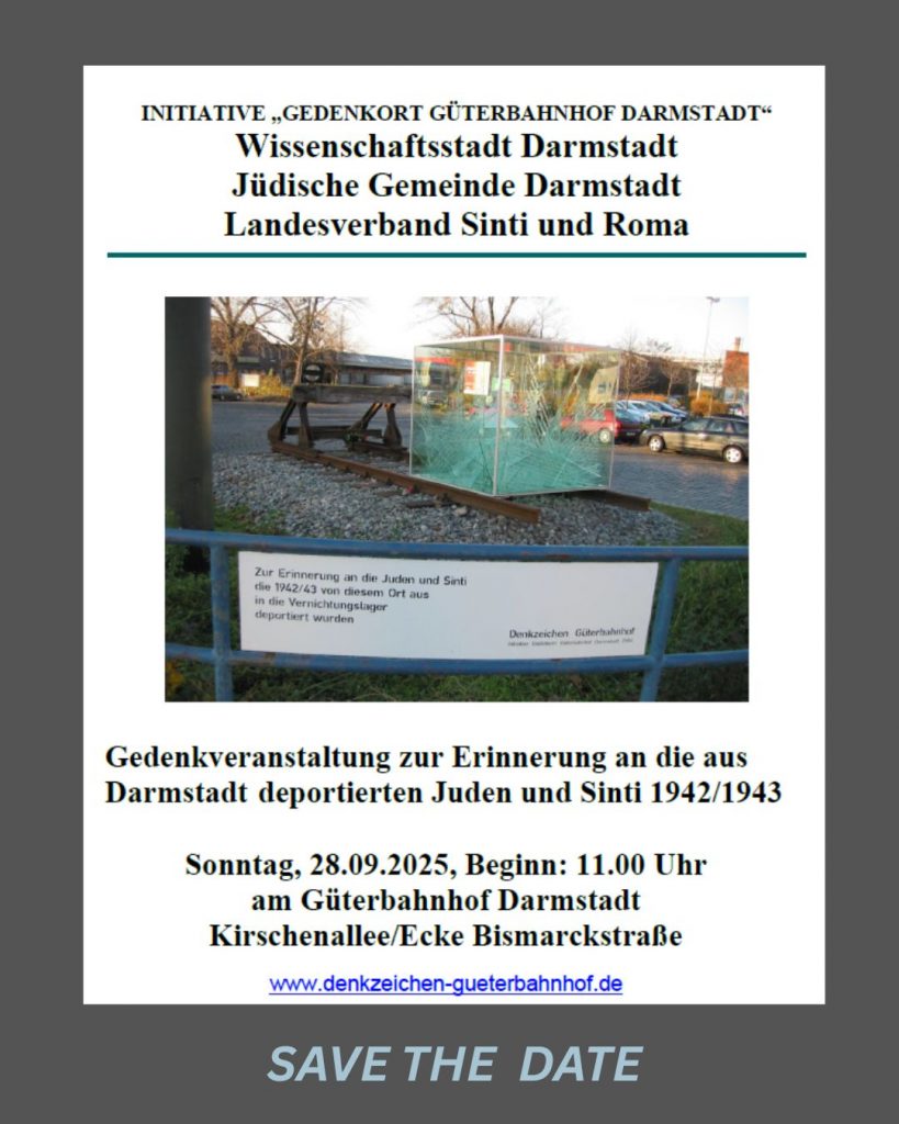 16.03.2025 / 12.00 Uhr / Gedenkveranstaltung zur Erinnerung an die 1942/1943 aus Darmstadt deportierten Juden und Sinti